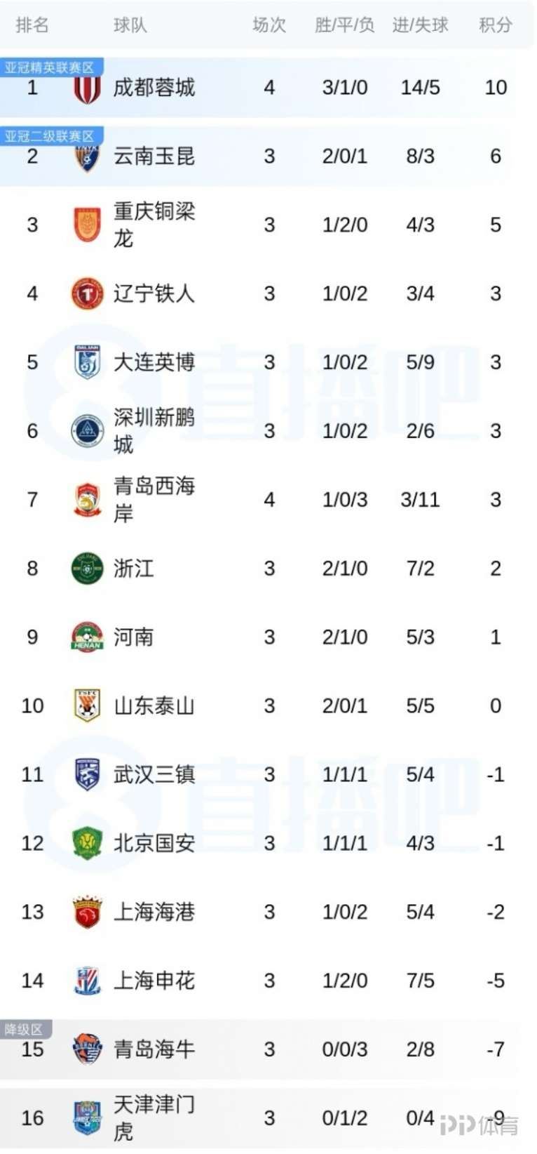 中超第4轮,蓉城5-1大胜西海岸,开季4轮3胜1平积10分领跑中超。